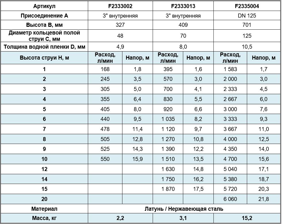 Высота струи max, м