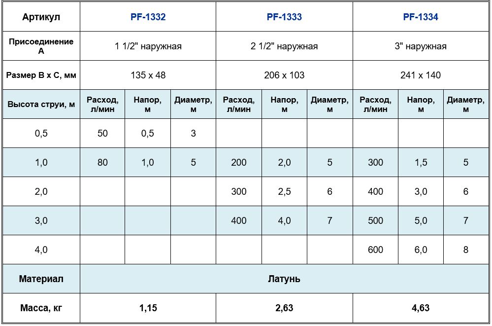 Высота струи min, м